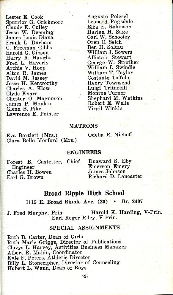 Excerpts from IPS Personnel Directory 1953-1954
